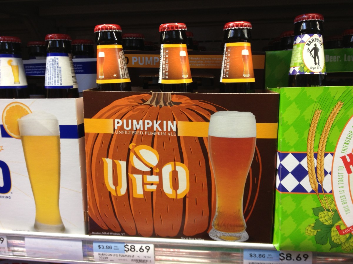 UFO Pumpkin Unfiltered Ale from Harpoon Brewery of Boston, MA. The whole UFO thing is Harpoon’s “UnFiltered Offerings.”