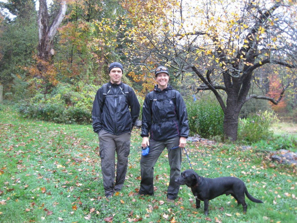 Sam, Pidi and I had finished a hike through the New Hampshire woods, gazing into holes that were formerly people’s cellars, now abandoned and full of leaves and garbage. The rain was monotonous and, even with our fancy “waterproof” fabrics, we were soaked to the bone and hankerin’ for a warm drink. Cider with brandy was just the ticket. We went to the liquor store to pickup a bottle of Korbel brandy.