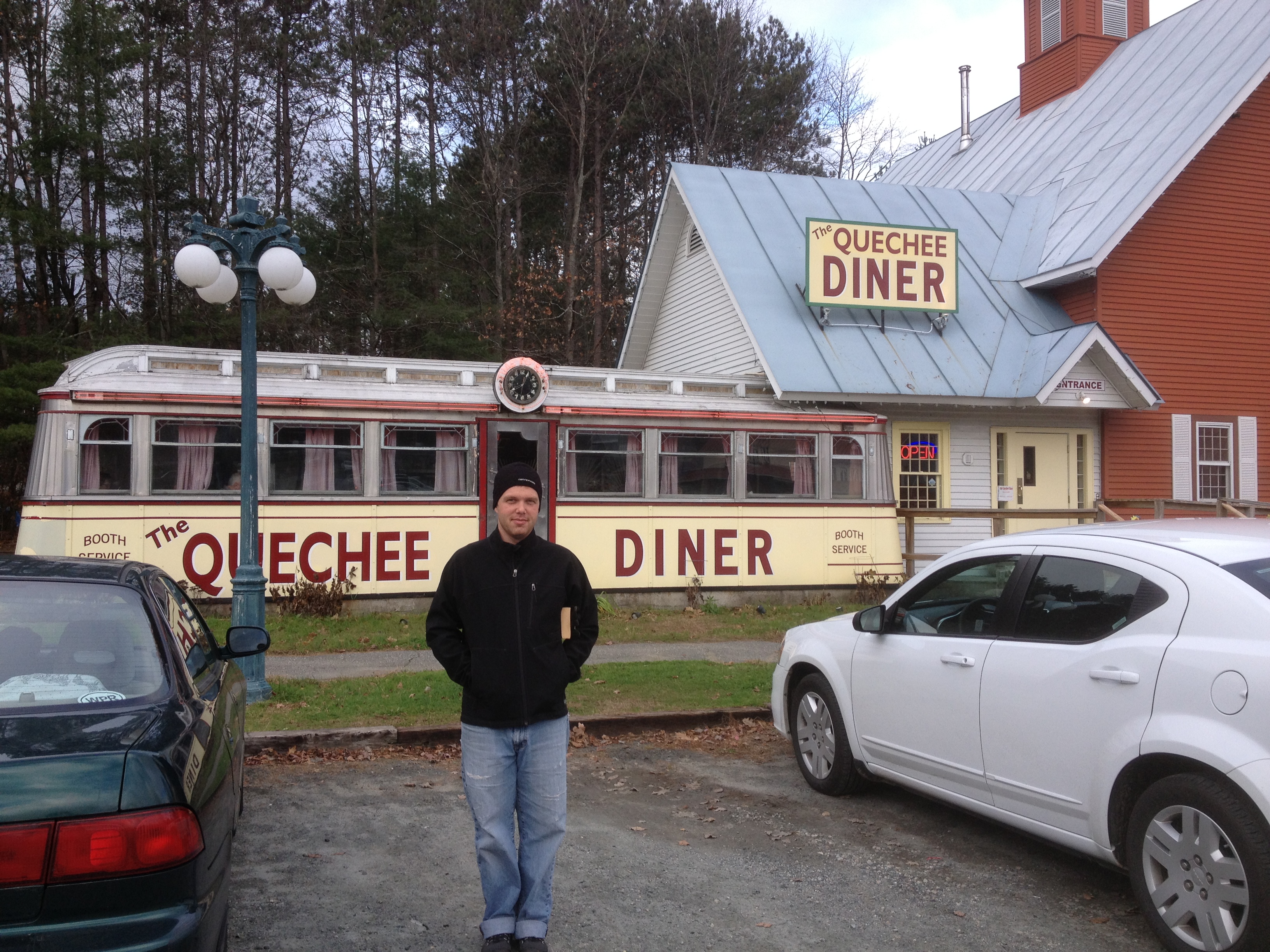 We drove about 20 minutes west into Vermont to the village of Quechee to goto their Diner for breakfast. It’s a greasy spoon attached to a tourist-trap strip mall within Quechee, the downmarket tourist area in Close-enough-to-New-York-City parts of Vermont.