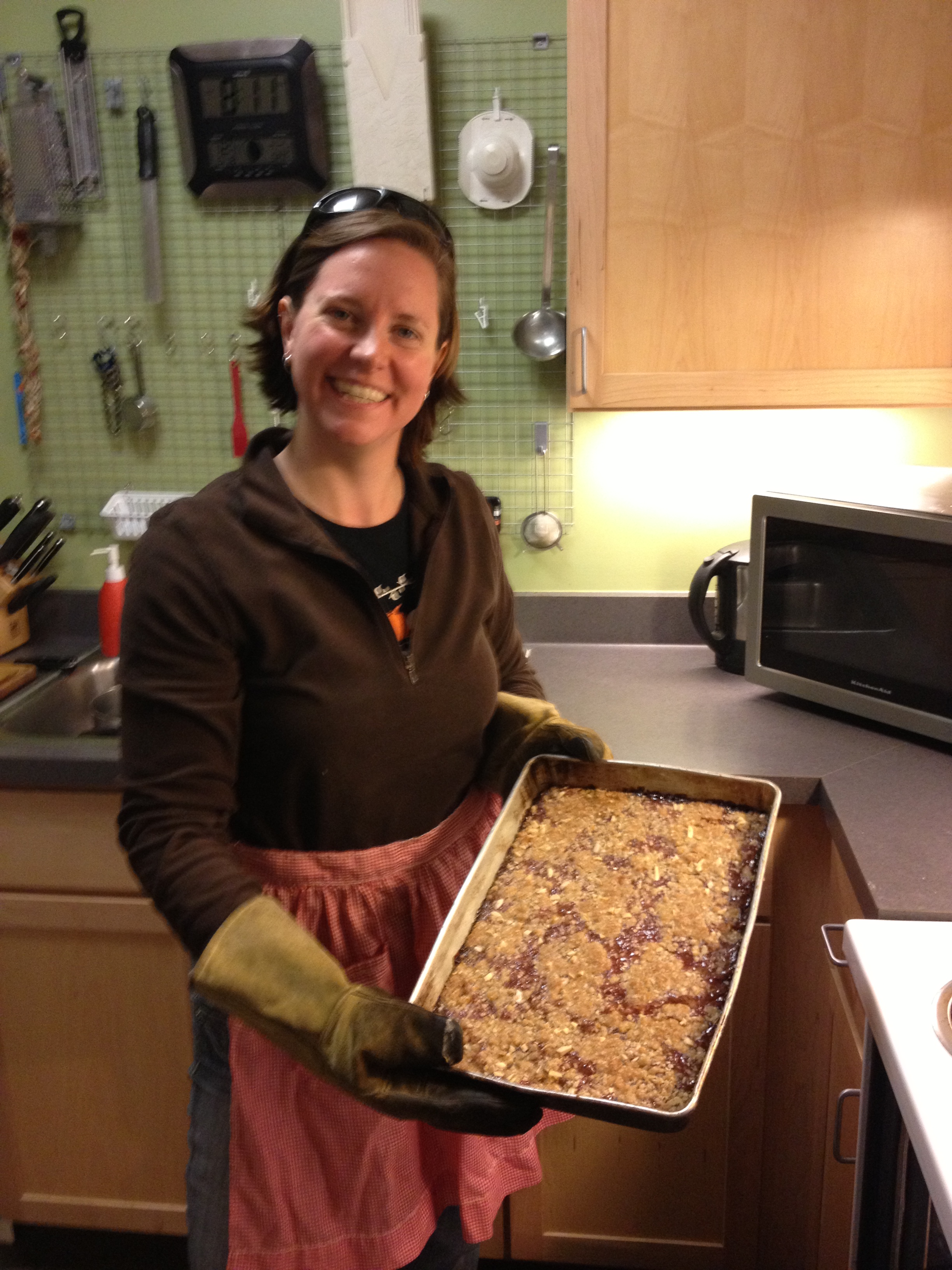 The writer with her rhubarb bars. How many variants of this picture have I posted to this blog? Egads…