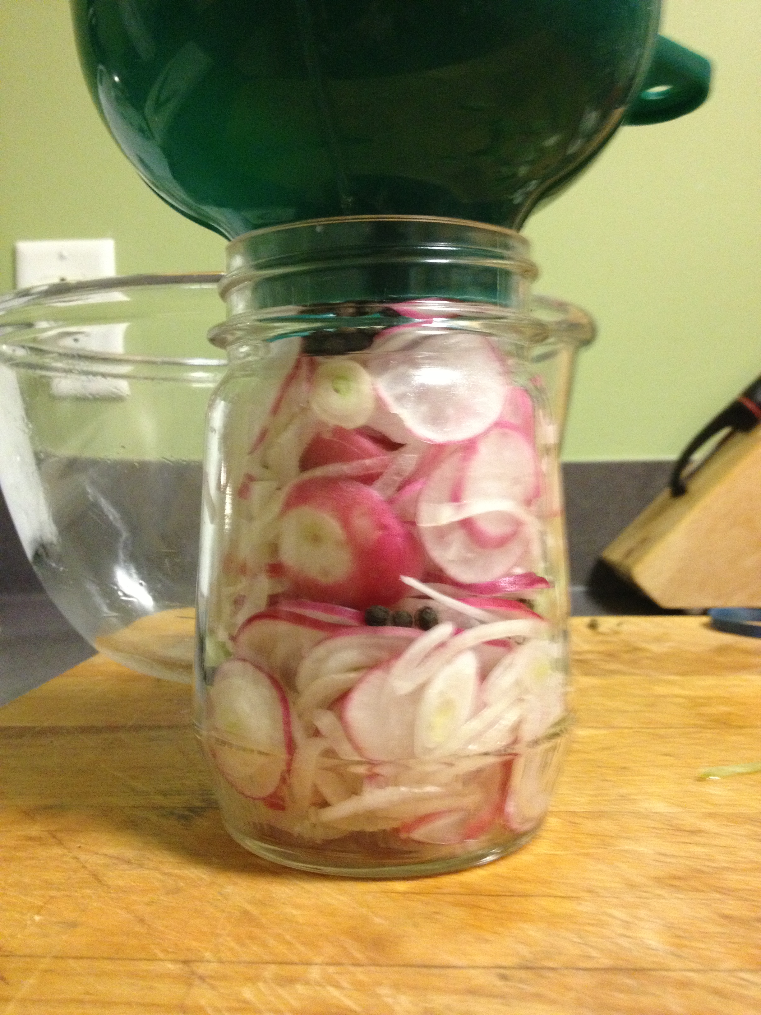 (Makes 1 pint of radishes. All measurements are approximate… This is the variability I talked about…)