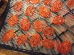 A note on the types of tomatoes to dry… I tried to dry slicing tomatoes, cut into slices or wedges, but neither came out good. I typically dry roma tomatoes that are shaped like pears and 3-5″ long. The insides of these tomatoes have more flesh than jelly, and few inner compartments to hold the jelly and seeds.