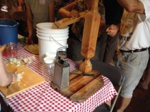 After chopping the vegetables and adding salt, the next step is to macerate the veggies to release juices and start the fermenting. This wooden macerator was handmade by a workshop attendee and the weight of the wood made quick work of macerating the vegetables.
