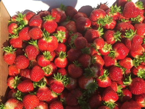 I made 30.5 pints of jam, using 34 jars (some were half-pint jars for gifts), inputting 28 lbs of strawberries, 7 packets of Certo pectin and 21.462 pounds of sugar.