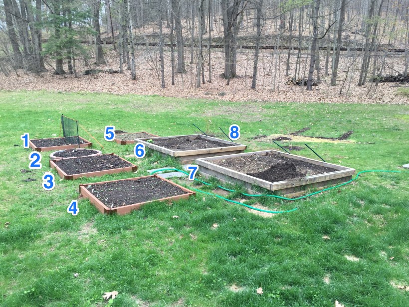 This spring has brought a large expansion of my vegetable garden. Illustrated above is a map showing what is planted in my new, bigger garden.