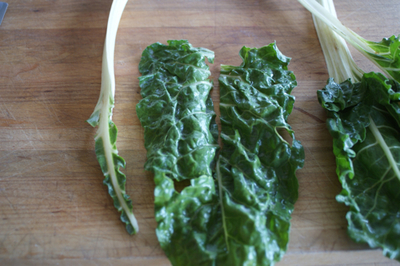 Lay the veg out on a clean, dry paper towel. If the greens are visibly dirty, rinse away the dirt, but don’t leave too much water clinging to the veg.