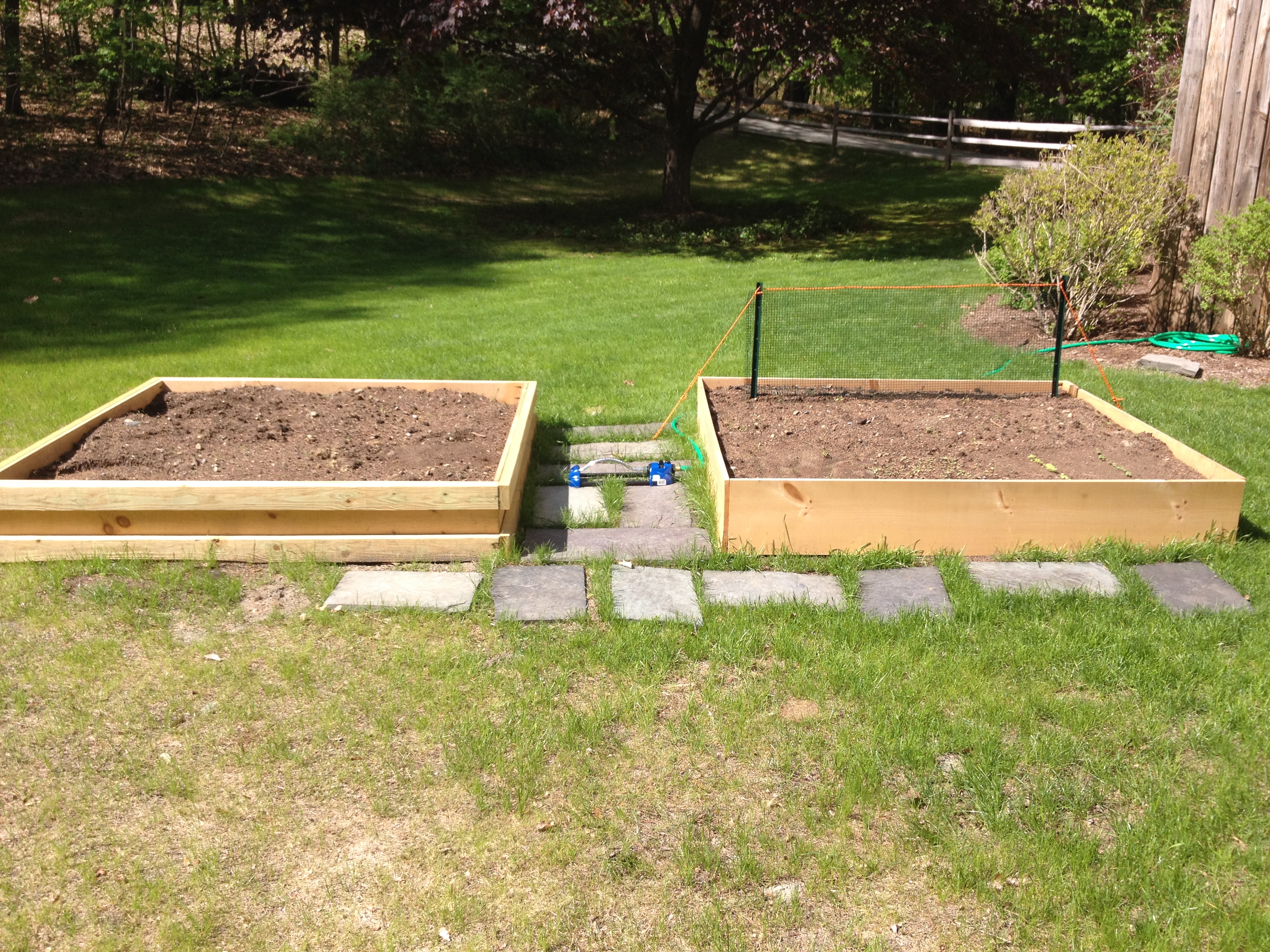 Sam and I have been dreaming about having a garden again. Finally, we dug up some sod, had a pile of topsoil delivered, and built some raised beds.